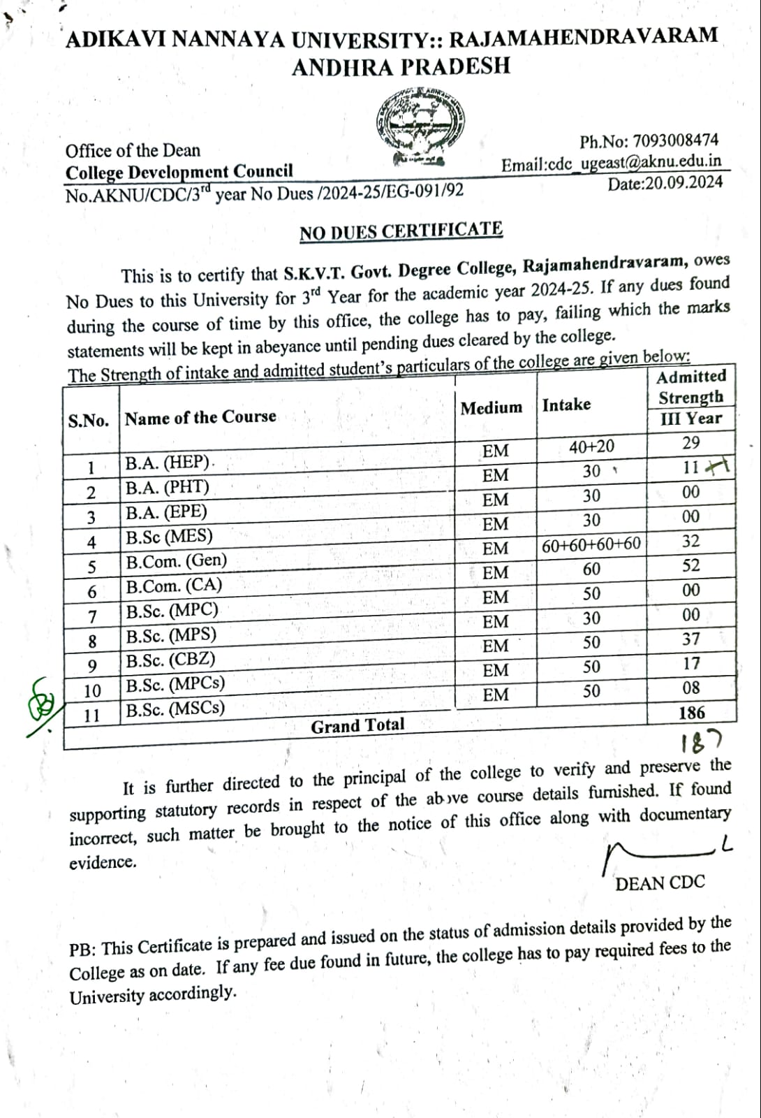 • University Affiliation Certificate